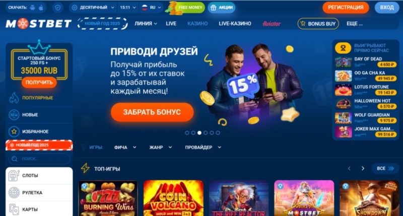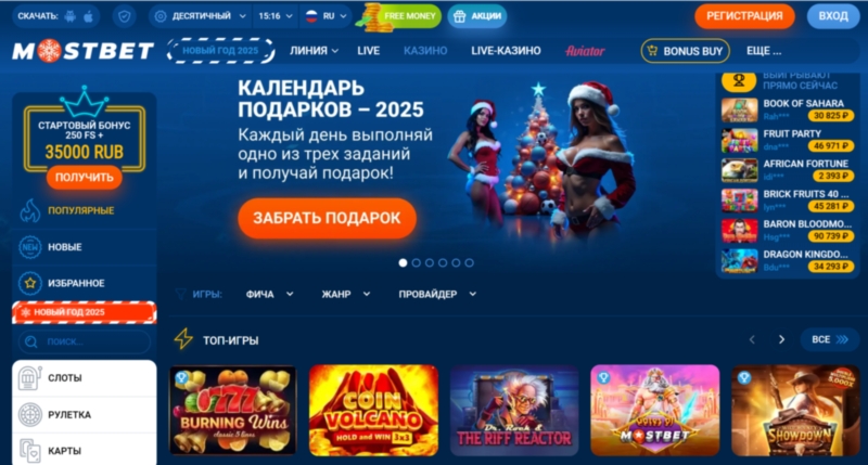 На официальном сайте Mostbet сразу видно главное: слева расположена линия с основными спортивными событиями, сверху — разделы казино и бонусов, а в центре — самые популярные матчи дня. Это упрощает навигацию и помогает быстро найти нужные игры.